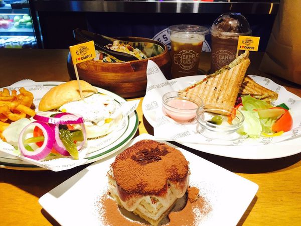✿捷運忠孝復興✿店面很寬敞!位置間距不小~很適合聚餐聊天菜單提拉米蘇牛肉菇菇漢堡帕尼尼木碗沙拉紅醬海鮮燉飯OREO巧克力冰沙漢堡和帕尼尼比燉飯值得尤其帕尼尼麵包部分烤的有脆度內餡起司很濃郁之外牛肉醬也很夠味店家幾乎都採自助式份量頗大但味道不算太驚豔CP值還OK適合很多人一起點各種餐點來吃✿店家資訊✿地址:台北市忠孝東路三段203號電話:022751-6021營業時間:週日~週四1100-2300,週五週六國定假日1100-0000忠孝復興,CAMPUS