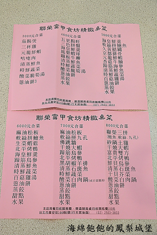 聯榮富甲食坊的桌菜,給大家參考