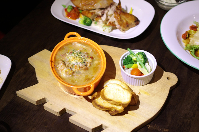 旁邊烤的酥脆的麵包拿來沾著湯汁吃非常棒!