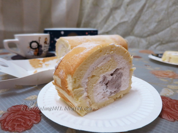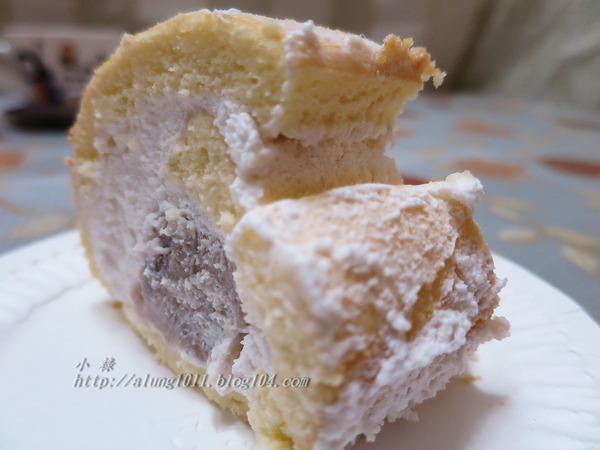 ◎純淨的歐牧生鮮奶油,捲起了柔軟帶彈性的舒芙雷蛋糕、餡心的芋泥中藏有小芋塊的口感…