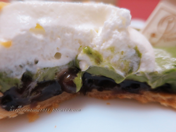 的口感+日本宇治抹茶的醇味流香,夾層內是香甜的屏東的有機紅豆+紫米~