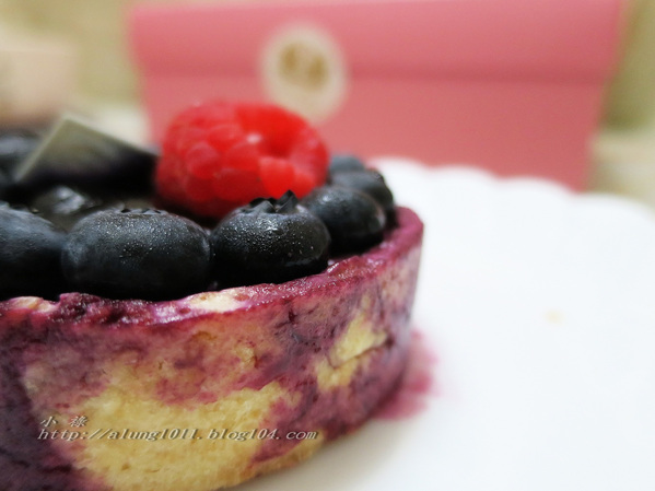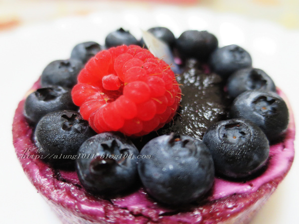 綴飾一顆鮮豔欲滴的酸酸覆盆莓~ 口感極搭- 有著不凡的吸引力,怎能不愛藍莓塔!?