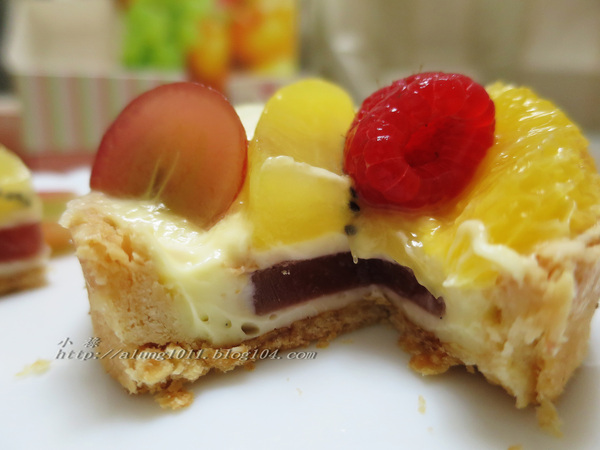 當季水果鮮甜豐盛鋪陳有:葡萄、藍莓、香橙、奇異果、覆盆莓等,裏層是清爽可口的