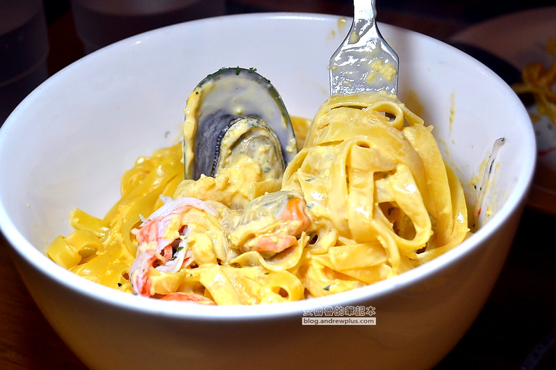 ▼奶油醬汁吃起來好像是使用蝦頭熬煮出來的高湯做底,鮮甜味非常非常足,調味中加了酒,除了去腥味,也增加了風味。整個醬汁很均勻的附著在麵條上,讓每一條麵一入口除了滑順還有香氣、甜味就在嘴裡整個散開! 而扇貝以及淡菜也都巴上了醬汁,香甜的醬汁佐彈牙的口感,差點連淡菜的殼都吞下去了!