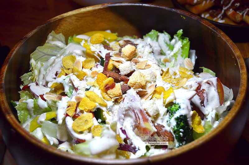 每一份的餐點份量都很大,適合兩個人分食,一個人吃會太撐! 沙拉是這樣,薯條也是這樣~就不用說義大利麵也是好大一碗