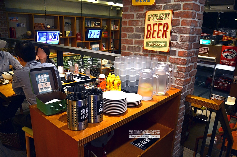 ▼裝潢是美式學院風格,大大的書櫃和黑板的菜單很有自己的特色~不過內湖店的大螢幕電視好像比較多台~到處都有電視看!