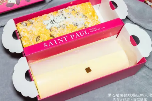 接下來的是第一次購買的「雪紡布丁蛋糕」,外盒整個都是透明的,再用「聖保羅烘焙花園」專屬紙套套上,上頭的小兔子看起來格外可愛,另外,這款蛋糕也是減糖的喔!