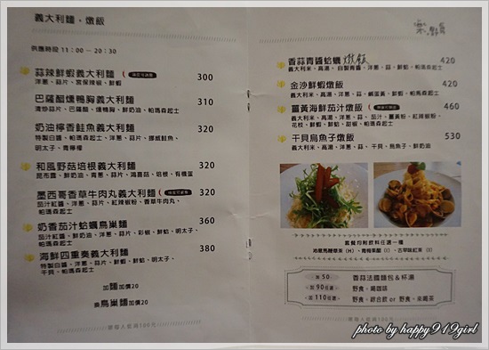 義大利麵及燉飯+$50,可享香蒜法國麵包 & 杯湯