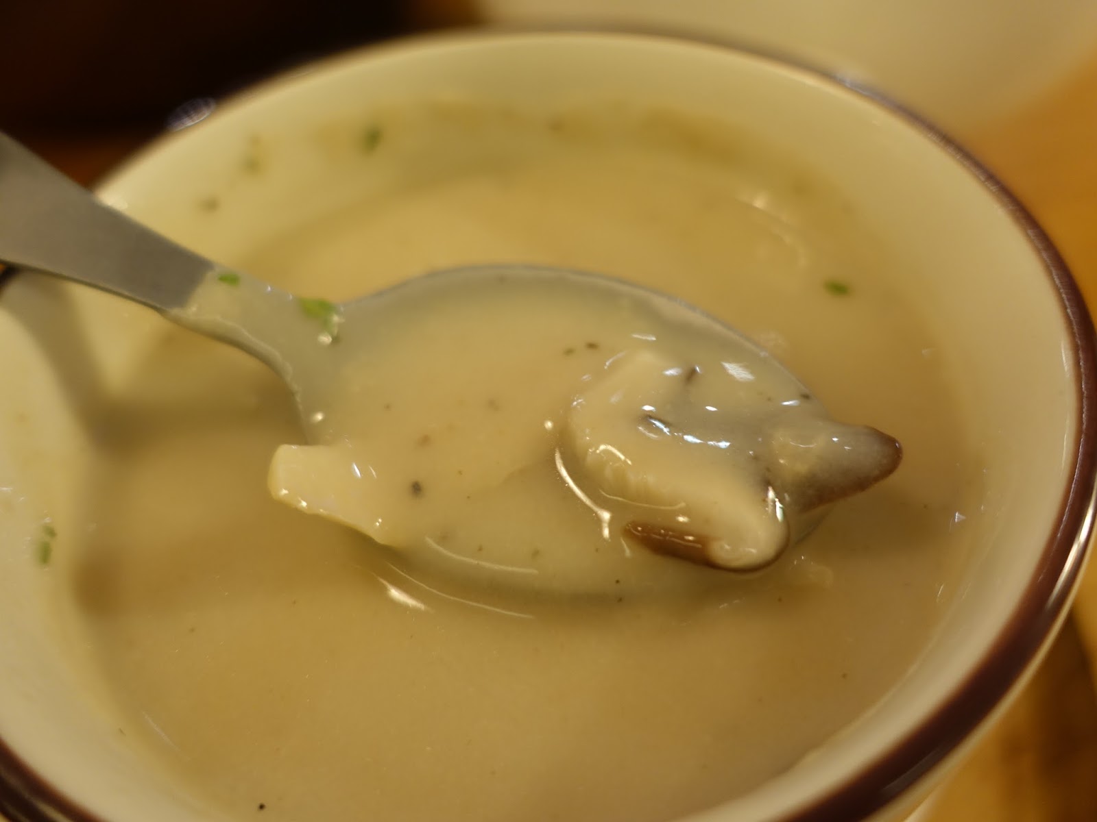 這碗熱呼呼的主廚特製蘑菇濃湯喝起來很滑順,蘑菇也很新鮮!