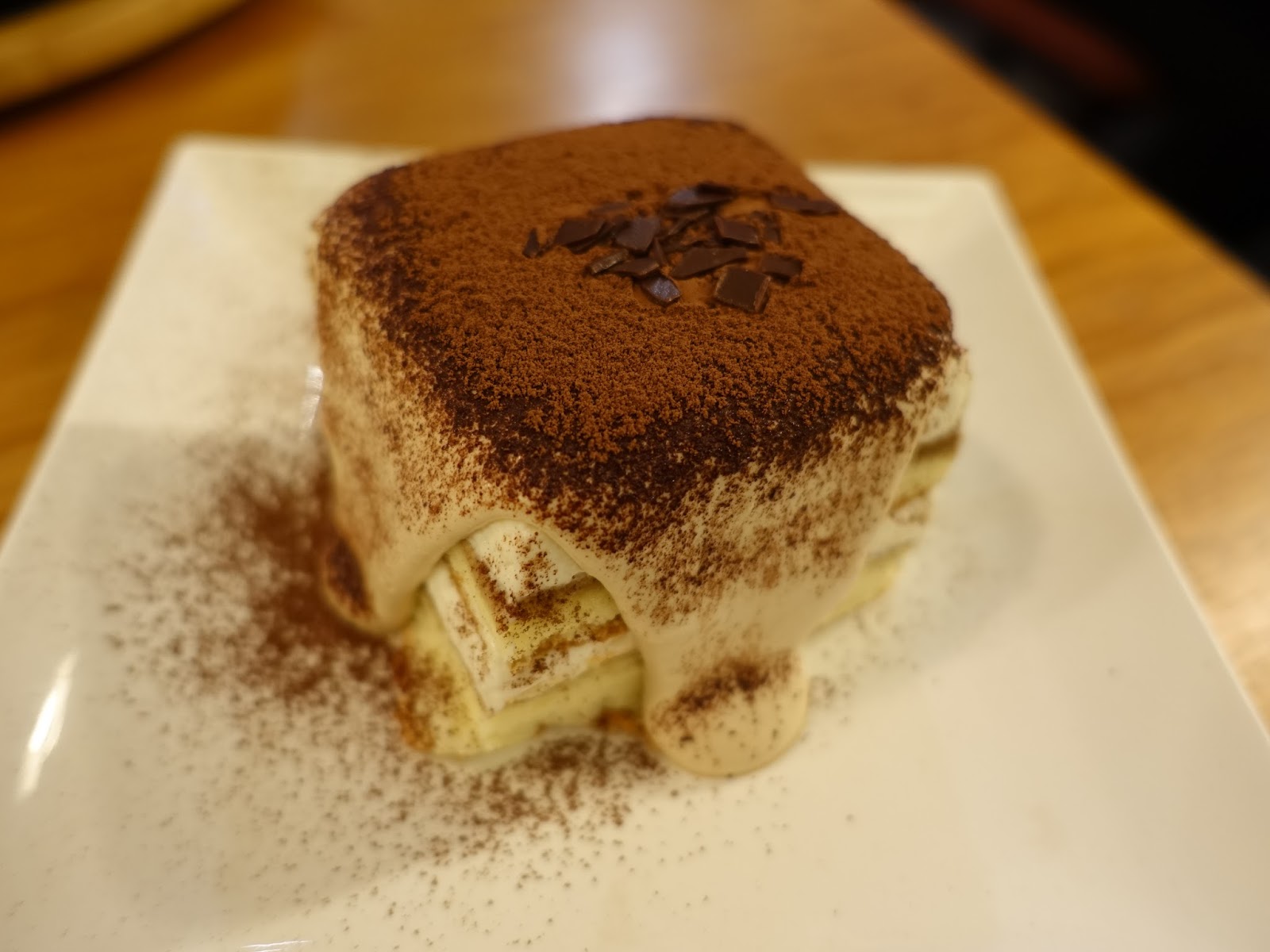 提拉米蘇蛋糕的蛋糕體吃起來很新鮮,最上層淋上了濃厚的咖啡奶油醬,再厚厚的撒上一層巧克力粉和碎巧克力片,美式餐食就是這麼豪邁!