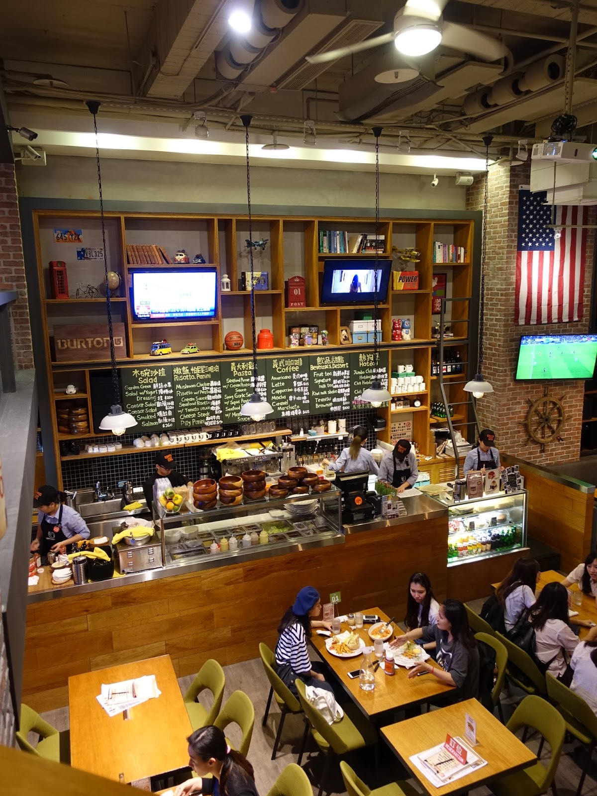 在挑高的空間中將整間店營造出美式校園的氛圍,吸引了不少學生和附近的上班族。