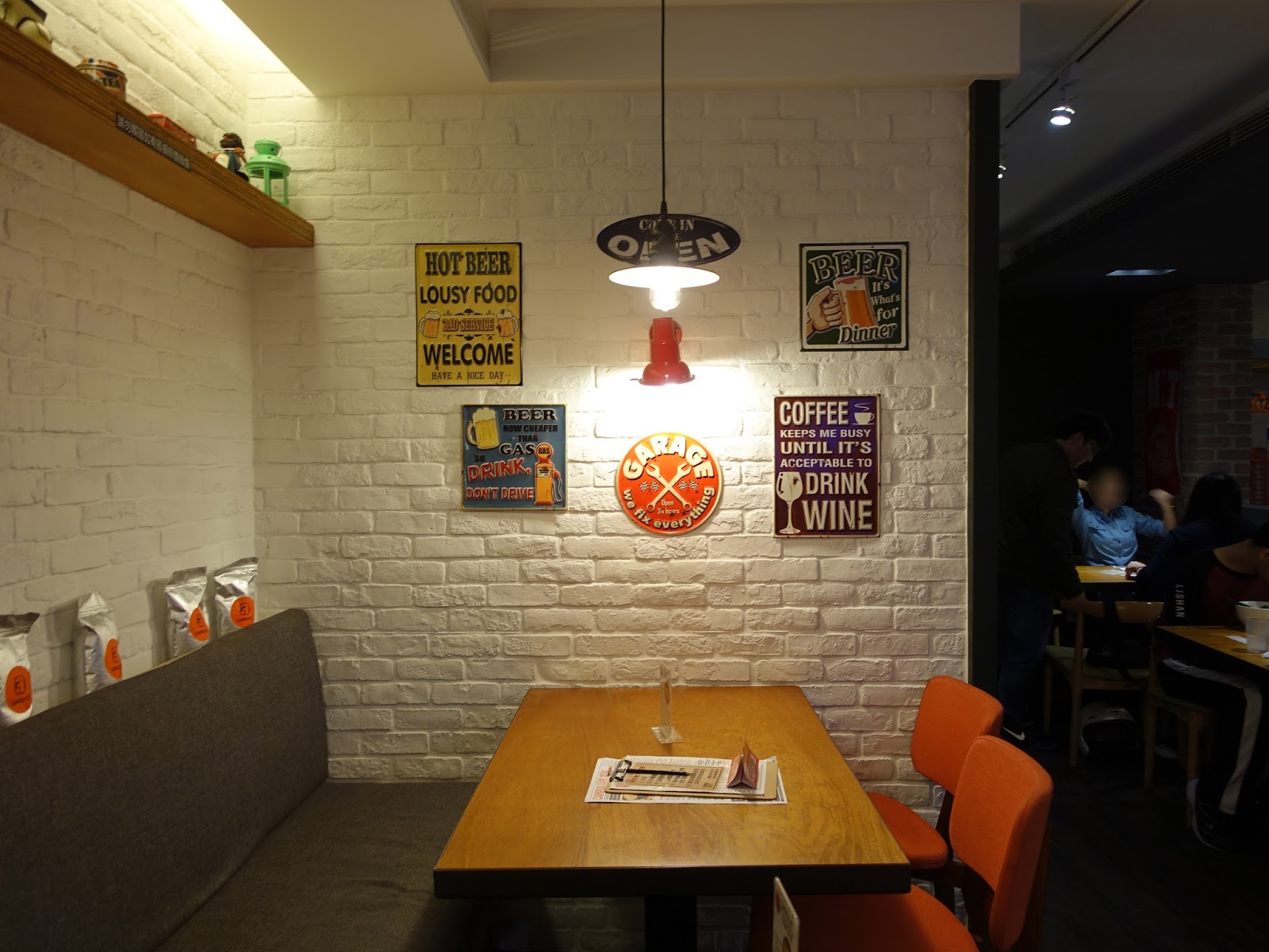 還不到下班時間門口已經有人在候位的這間美式餐廳位於內湖西湖捷運站周邊,從西湖站2號出口步行到這裡大約五分鐘,店內有兩層樓,但店內坪數不大,儘管桌子排得很密,幾乎沒有走道,座位仍然不夠多,平日不到七點就全坐滿了,店內用餐限時一個半小時。