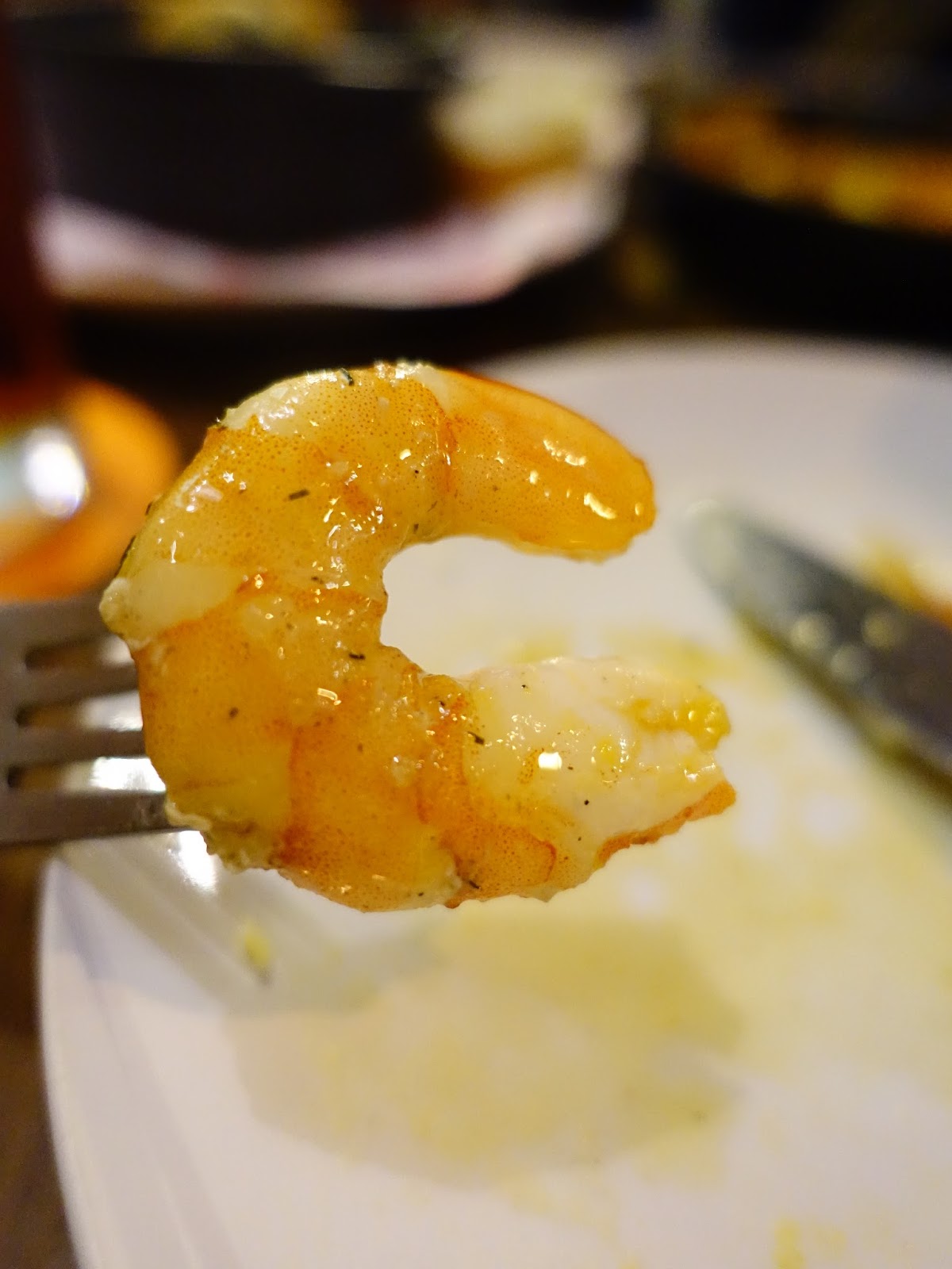 大蒜蝦剛上桌時還看不出究竟,翻開麵包片裡面是好幾隻飽滿的大蝦浸在熱蒜油裡,已做去殼處理,吃起來很方便,新鮮度也很好,蝦肉呈現自然的鮮甜。