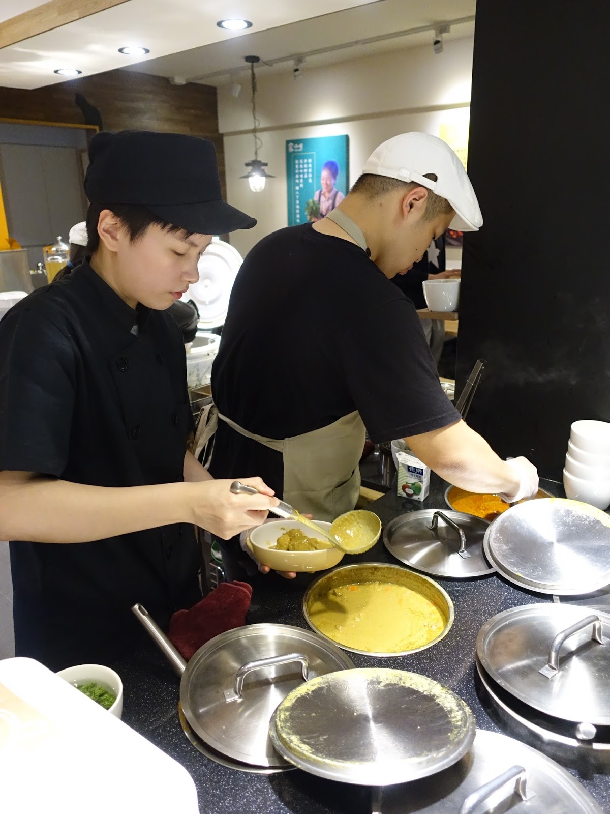 幾年前曾經在花蓮吃過家咖哩,就因為他的真材實料及咖哩濃郁的好滋味而留下深刻印象,最近他在信義區也拓展了新據點,自然不能錯過,餐廳其實比較靠近誠品生活松菸店,我習慣從市府站走過去,步行大約5分鐘可達。用餐方式採取半自助式,先找到位子後再到櫃台點餐及取餐。
