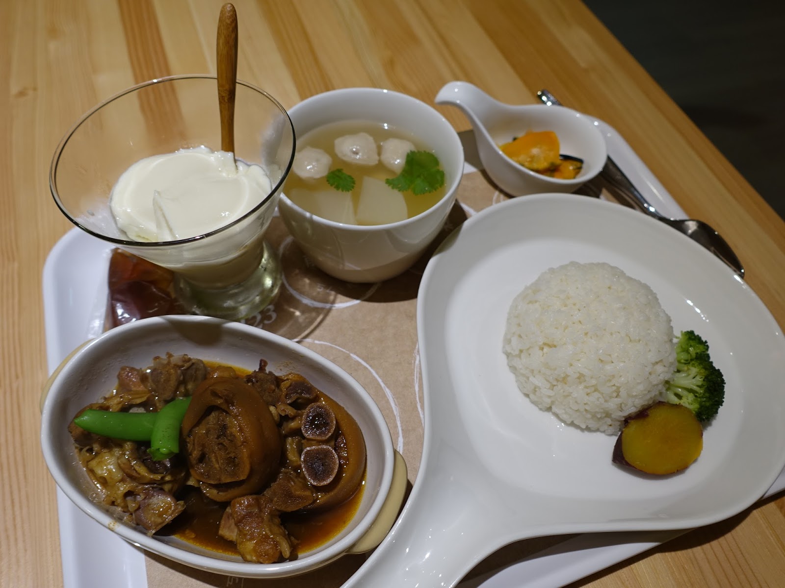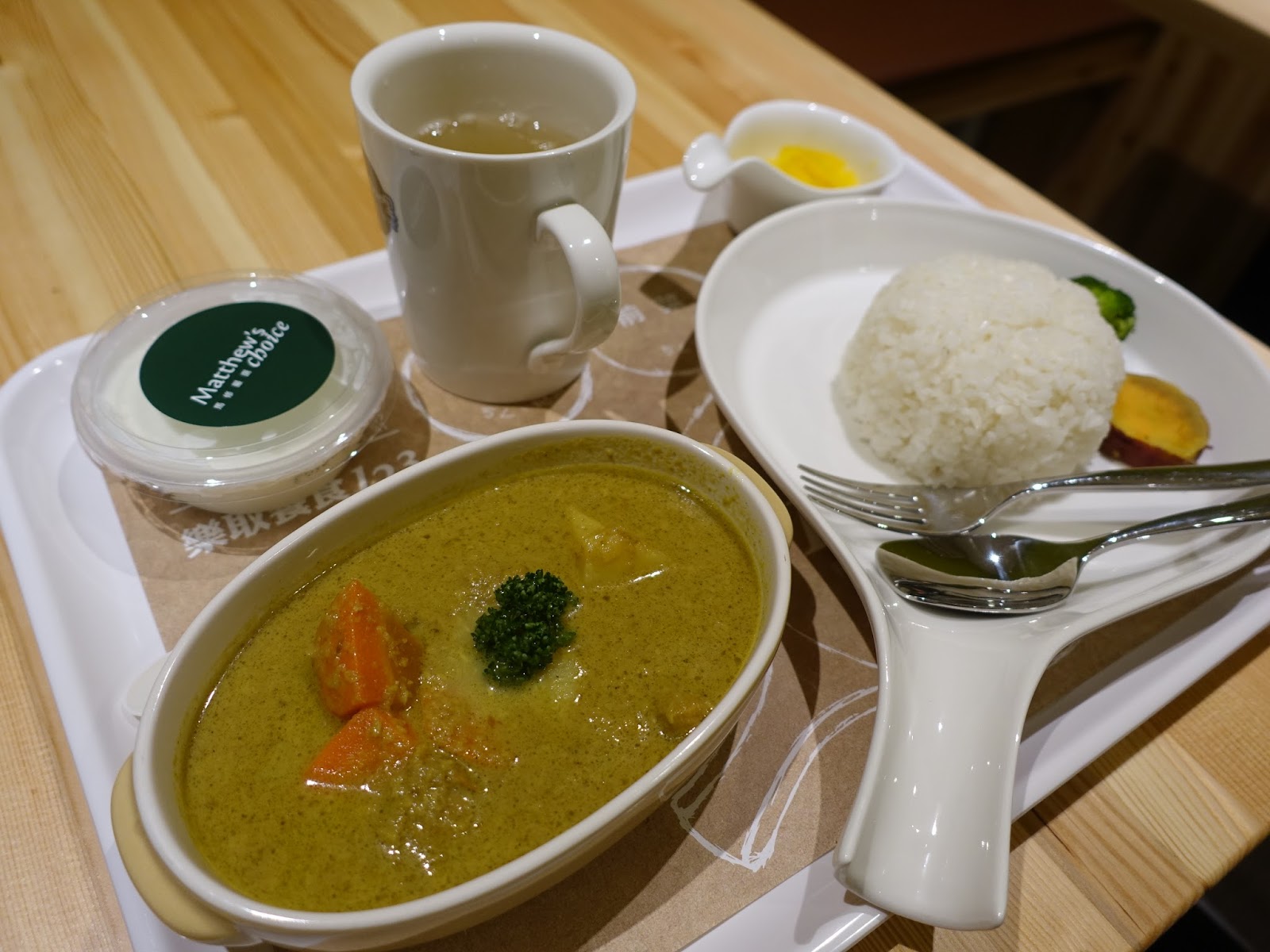 味萬田有機豆花的口感很細緻綿密,很像傳統豆花,淋上糖水後帶著微甜的滑嫩感,是道清爽健康的甜點。而馬修嚴選的原味優格,帶著微酸的口感,沒有淋果醬應該很多人吃不慣,但加果醬要再加20元,這是道很健康的點心,但在吃完濃重的咖哩後吃優格,感覺不搭。