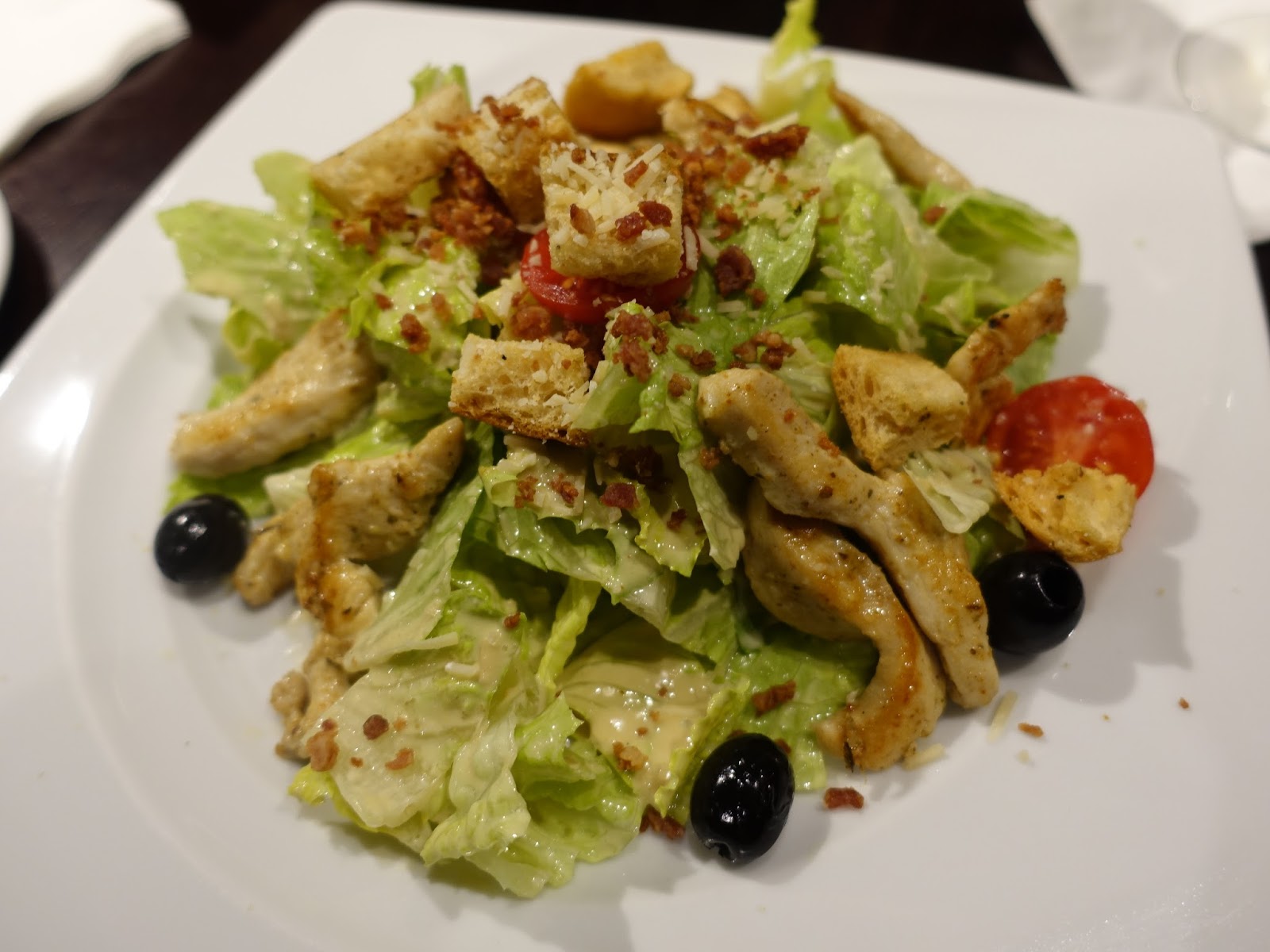 雞肉凱薩沙拉一上桌就能聞到很香的味道,嚐了一下雞肉,是現煎的,所以熱氣香騰,沙拉醬汁伴得很均勻,每片蔬菜葉上都帶著濃郁的凱薩醬汁,上頭撒著碎培根增加沙拉的滋味與口感層次,蔬菜葉新鮮甜脆,番茄也是特選皮薄汁多的品種,這盤沙拉在選材與細節上處理得讓人滿意。