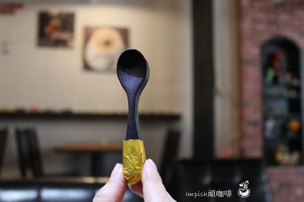 Impish頑咖啡的logo是老闆娘手持咖啡的剪影 唷,剪影感覺是有質感的少女, 本人則是個頭小小的個性正妹,有點大姐頭感哈哈哈哈哈好想被她馴養唷XD (感覺就會每天都被餵食得飽飽)