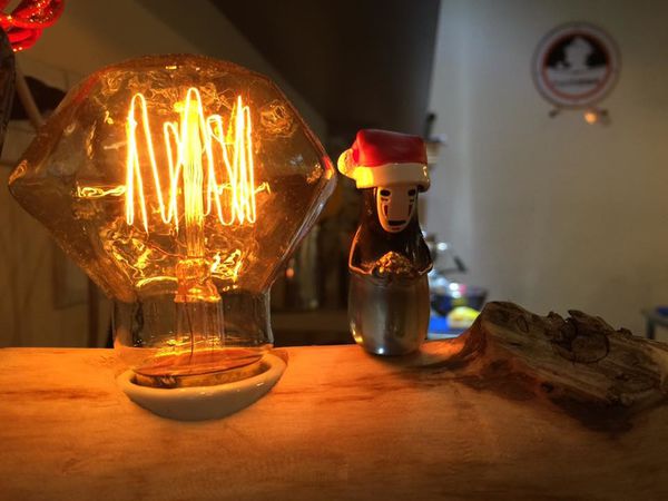 正在過聖誕節的無臉男也很討喜 , 依偎在發光的燈泡旁邊彷彿在取暖