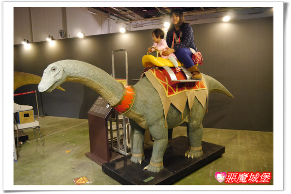 沒想到吧?竟然還能騎恐龍耶!來看恐龍展怎麼能錯過這個,倆姊妹都超開心的呢!