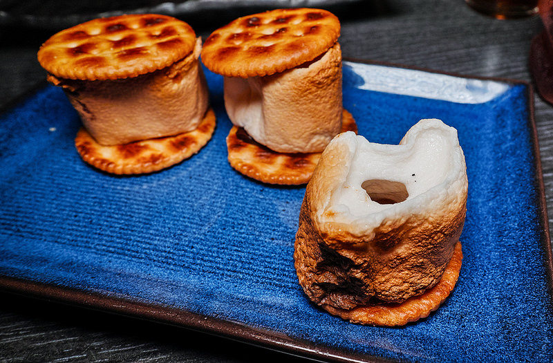 這甜點設計很有創意, 用兩片餅乾搭配中間烤過的棉花糖
