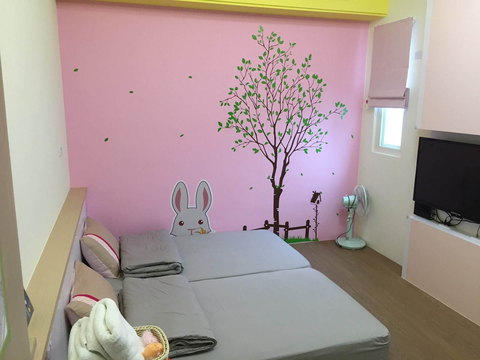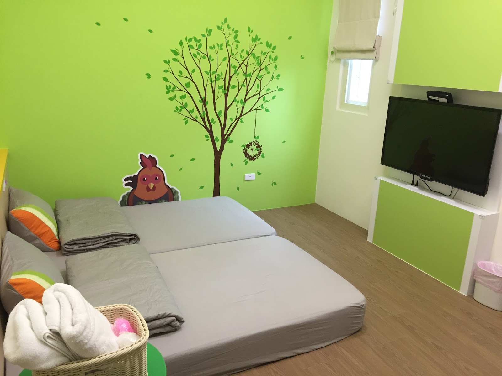 房間的命名都是以台東在地特色食材為主,像這間就是取做金針兔,房間是很舒服清爽的風格,且也因為無床架,讓小朋友睡這樣的高度也才放心。