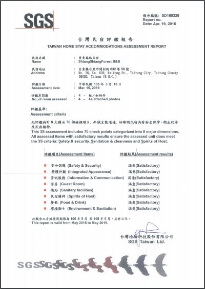 香香森林是四月份最新通過 SGS民宿認證的民宿,