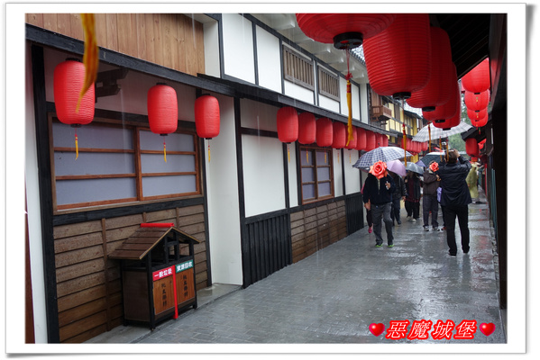 入口處就感覺到濃濃的日本風了,只可惜今天天氣不佳,雨有越下越大的跡象,而且到處都是雨傘花,實在不是拍照的好日子呀!