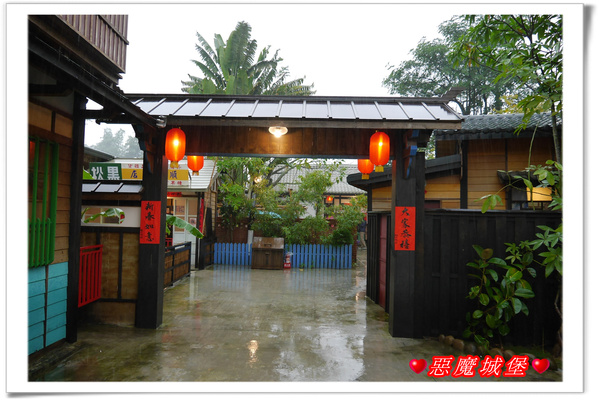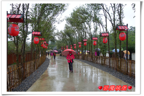 一走進園區,小徑兩旁種滿了桂花樹迎接著遊客,當中還掛著一盞盞印著「桃太郎村」的大紅燈籠,整個好有日本溫泉街的風味呢!