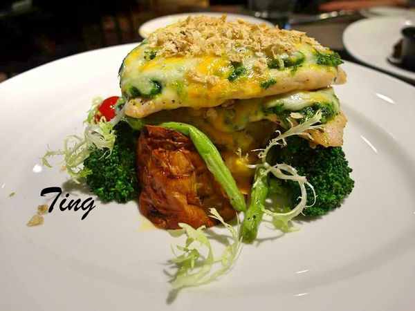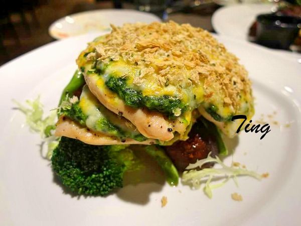 熱賣主菜-加州菠菜夾心雞排佐起司芋泥
