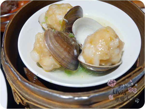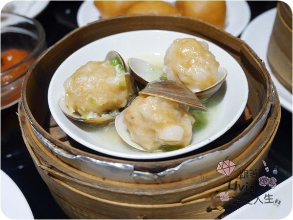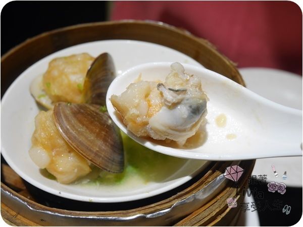 蛤蠣彈開將燒賣夾在中間,跟一般外面常看到的蟹黃燒賣長的都不一樣,