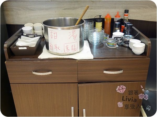 店內寬敞明亮,有提供甜湯免費享用(不定時會做變更),我這次品嘗到的甜湯圍紫米粥,
