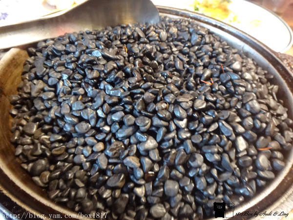 然後端出下圖那一大鍋的黑色石頭,