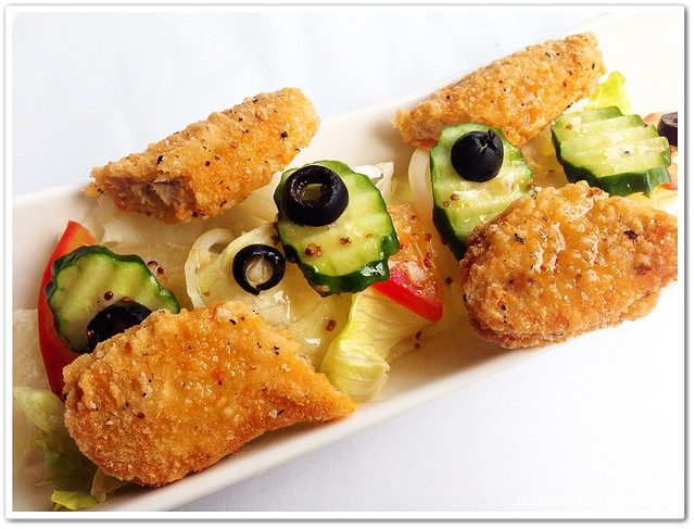 朋友點的檸香雞沙拉這道我之前有吃過,炸物雞柳條搭配和風口味的沙拉酸甜不油膩也不錯