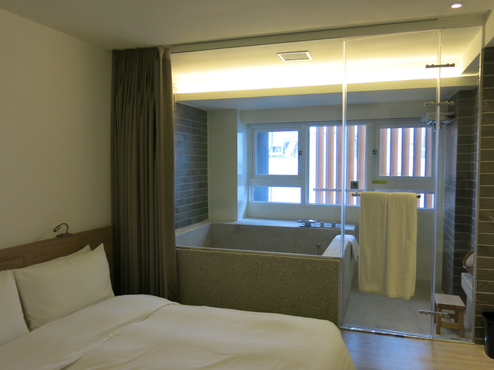 另一個四人家庭房型就寬闊不少,一進門就是這個大浴池及衛浴空間,淋浴與馬桶是各自獨立的。