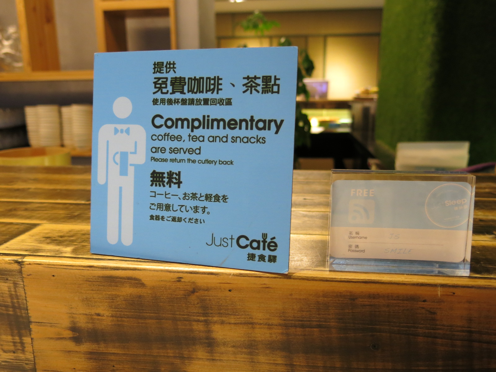 接待櫃台後方有一個很大的用餐空間Just Café,每日13:00~22:00時段提供免費咖啡及茶點,當然也可以帶自己的食物在這裡享用,除了餐桌區也有舒適的沙發座椅,營造出一個相當自在的休憩空間。