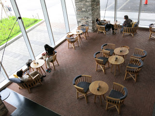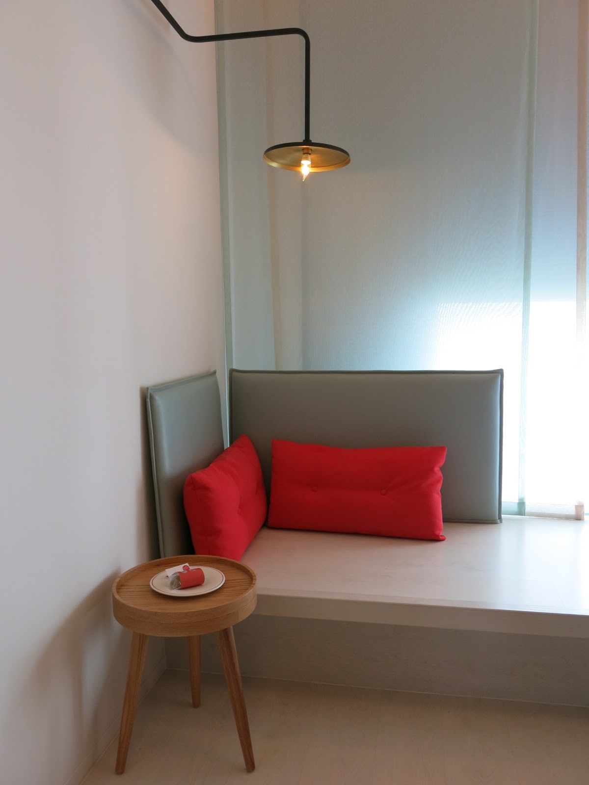 尤其是靠窗的這個明亮空間,讓人很想一直待在這裡,閱讀、上網或冥想,窗外是一片綠意造景,高樓層看出去,景觀相當好!