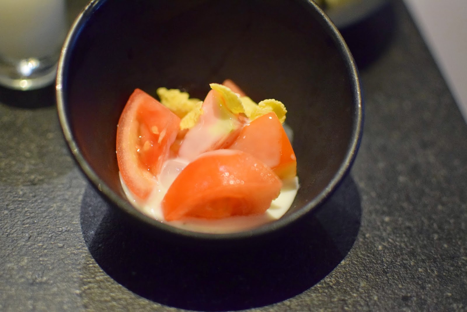 用完主餐後,侍者收走所有器皿,再仔細擦拭過桌面後送上甜點,甜點每人一套兩杯,分別是宇治金時冰淇淋與嶺岡豆腐,嶺岡豆腐帶著豆香且口感有彈性,佐上黑糖蜜,冰涼滑順;而綿密的宇治金時冰淇淋搭上熬煮得綿軟的蜜紅豆,真的很消暑!喜歡甜食的我,吃完整個心情超好!