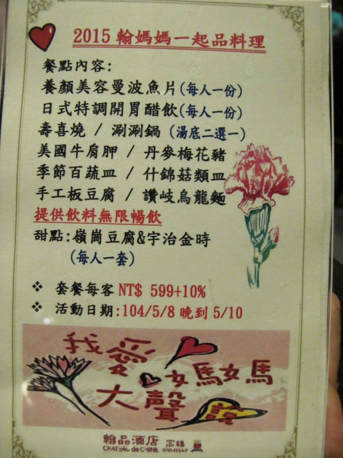 在桌上發現這個母親節的優惠套餐,5/8~5/10這段期間來吃,還可以吃到曼波魚片!