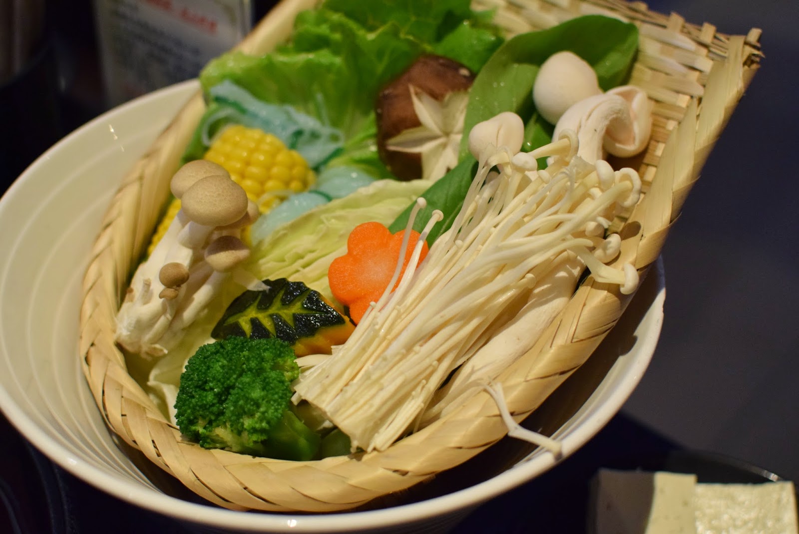 品日式料理的火鍋為兩人共享一鍋,有壽喜燒與涮涮鍋兩種選擇,我們選擇的涮涮鍋以柴魚高湯為基底,襯托出肉類與蔬菜的鮮甜,清爽的高湯涮煮下,讓人嚐到食材的新鮮原味。