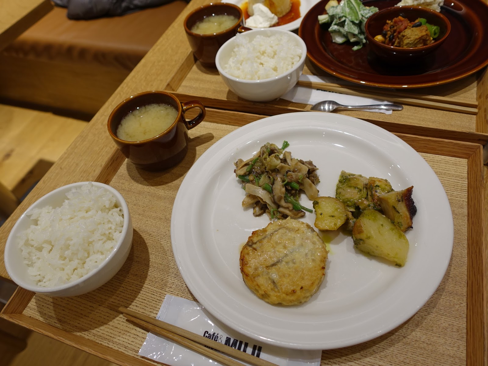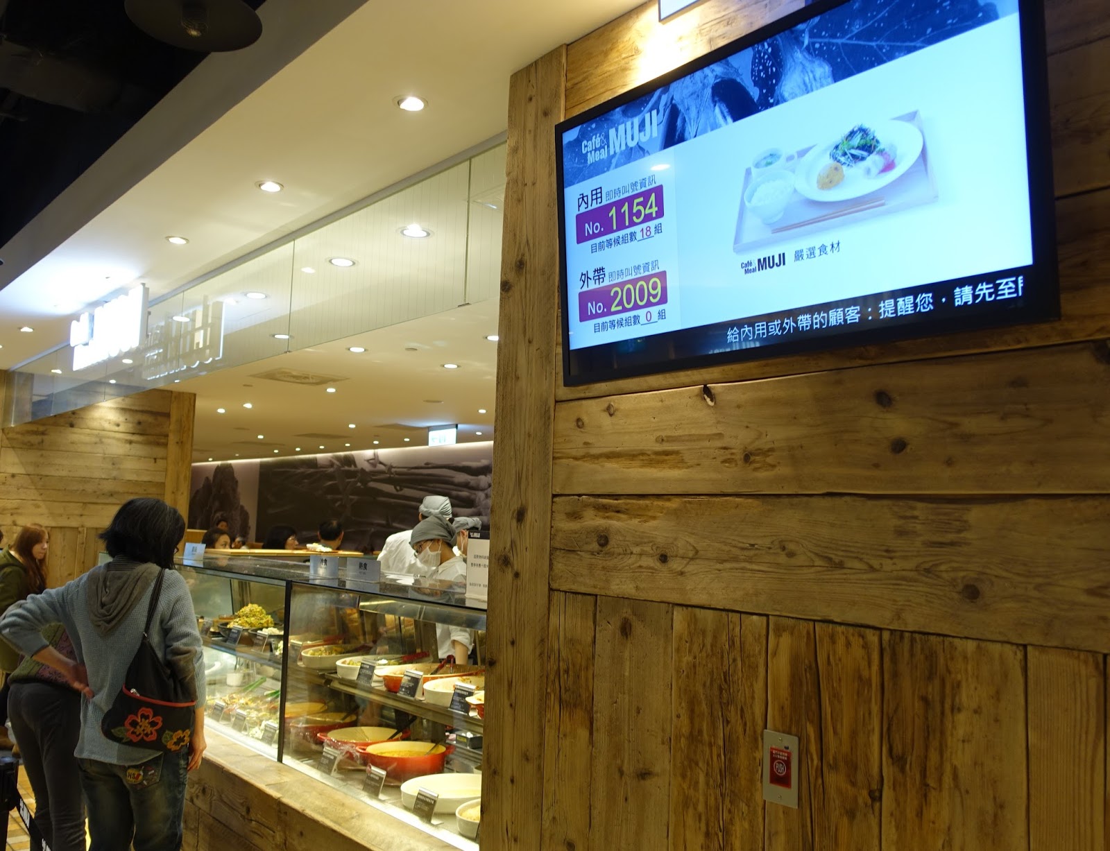 每次經過阪急Muji Cafe總是看到店門前大排長龍的客人而瞬間消滅了我想要進去用餐的意志,這次連假又經過阪急B2,萌生在MUJI用餐的念頭,就趕緊去機器前按了號碼牌,等了前面三組人進場後,就輪到我們了!服務生帶位後,把桌上的餐牌扶正標示這個位子正在使用中,才可以排隊點菜!點菜時還會再度確認你是否已經有座位,整個服務流程非常仔細。