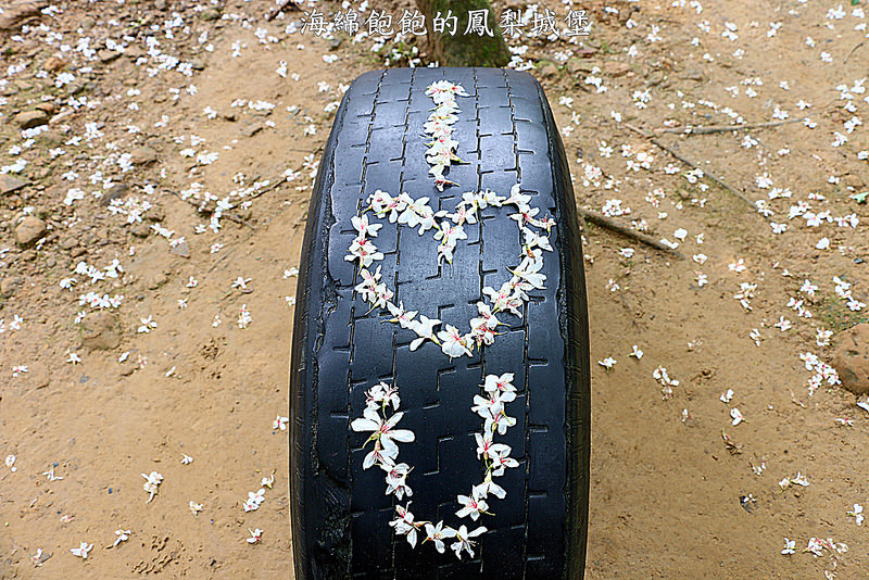 剛墜落的新鮮桐花,紅白相間真是美麗!