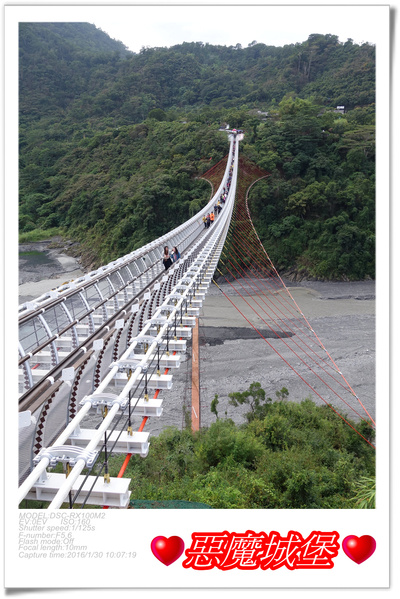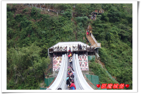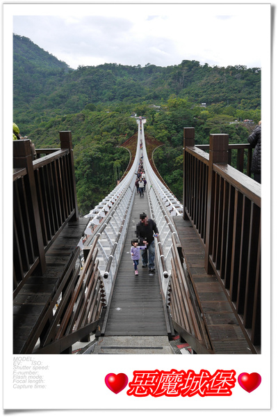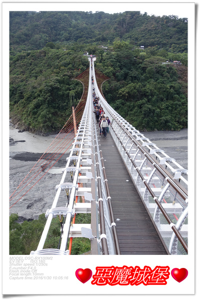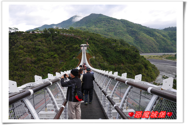 幸好沒有等很久就輪到我們了,其實一次放行是50人,前一匹人走到吊橋一半左右,就讓下一匹人進入,這樣橋上就剛好100人啦!