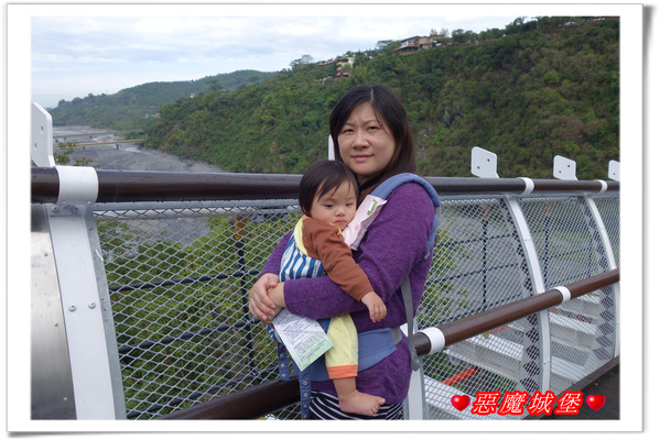遠遠就望見,想抵達瑪家那端的出口,還要爬不少的木棧階梯,天哪!背著Q妹走吊橋不辛苦,爬這串階梯才是挑戰啊!