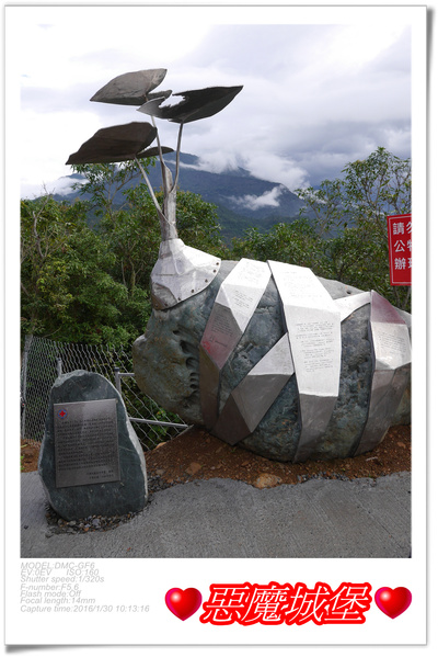 「屏東山川琉璃吊橋」在兩端入口處也有琉璃裝置,還各有一座巨石藝術,瑪家端的是由北葉國小所創作的「番薯」,三地門端的則是由地磨兒國小所創作的「芋仔」,我只拍到瑪家端的「番薯」,小朋友的想法就是很天馬行空,好獨特的一顆番薯啊!