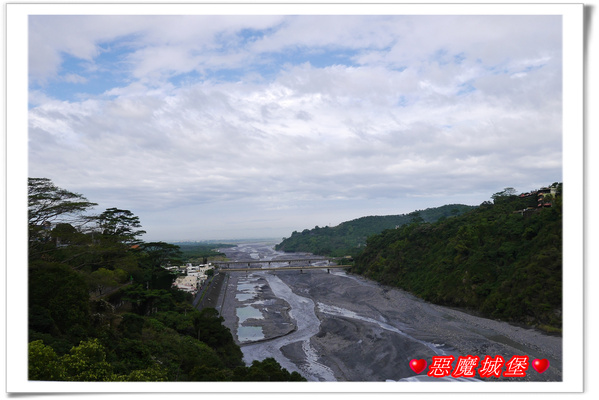 排隊處就可以遠眺「屏東山川琉璃吊橋」,群山環繞下的吊橋,看起來真是壯麗呢!