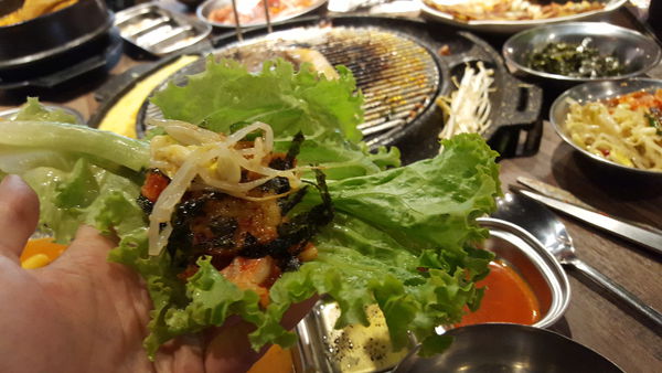 無論是包在生菜裡和大口的肉一起咬下去 ....