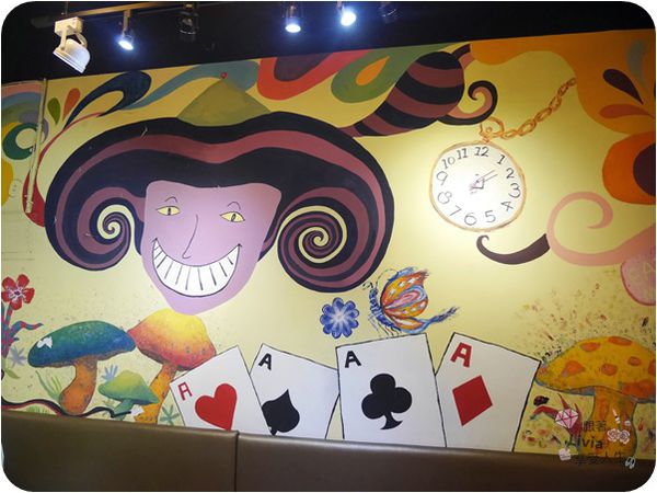 走進餐廳內,更是不得了了!一大面牆上手繪圖,走的是童話故事風格,