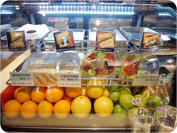 除了果汁之外還有像是帕里尼、烤餅、沙拉這類的小點心可以一起購買,很方便也不用等兩趟。