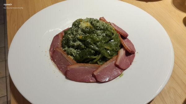 青醬松子燻鴨義大利麵(單點275加套餐375