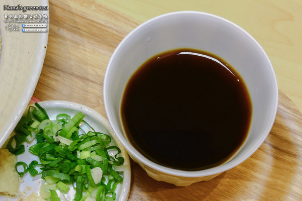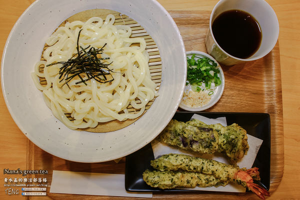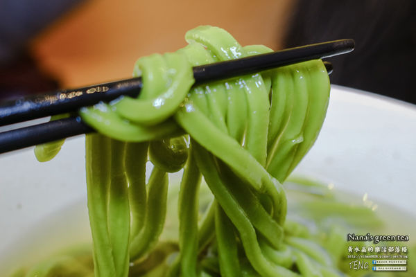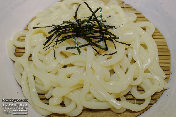 看出不同處了嗎?這一份烏龍麵的麵條是"抹茶口味"的唷!